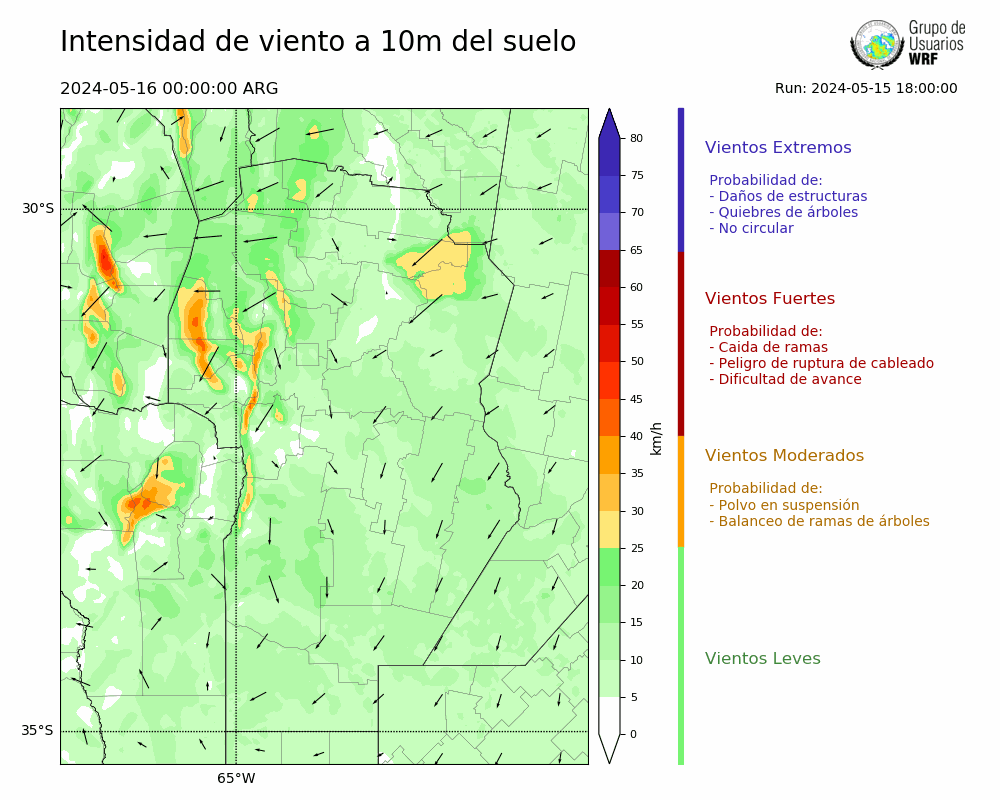 • Intensidad máxima: 10.45 km/h (17/05/2024 01hs.)