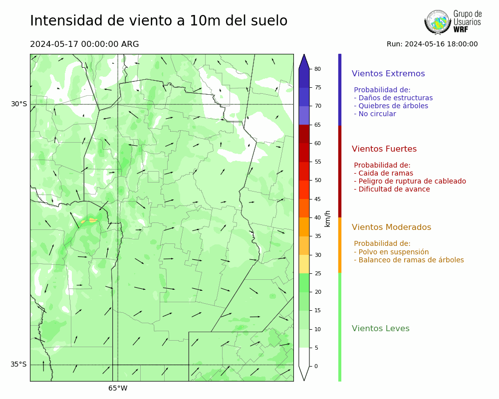 • Intensidad máxima: 12.51 km/h (17/05/2024 00hs.)