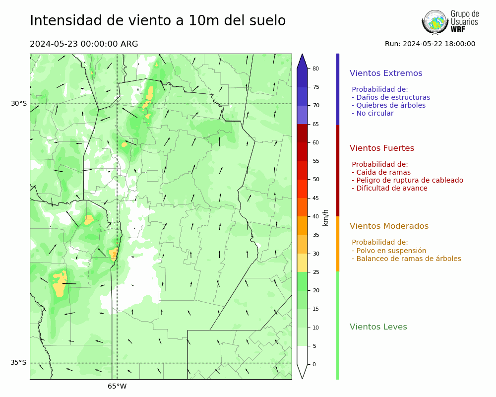 • Intensidad máxima: 15.25 km/h (23/05/2024 11hs.)