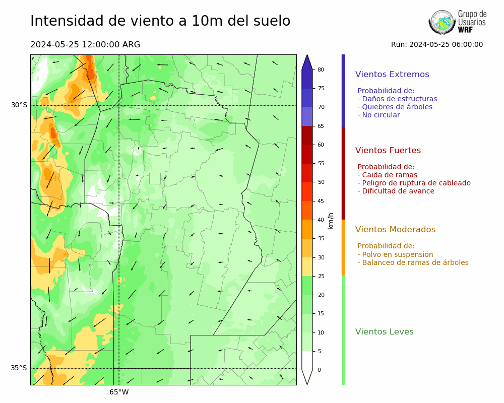 • Intensidad máxima: 11.22 km/h (25/05/2024 21hs.)