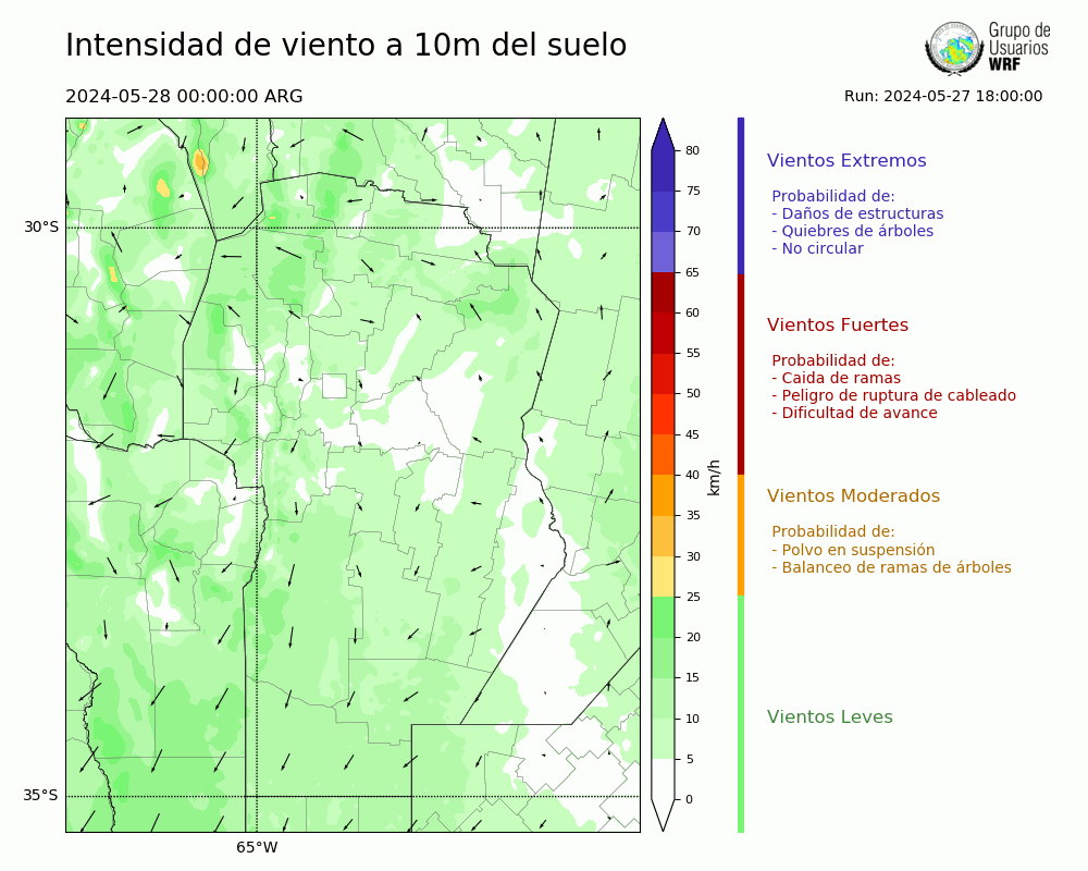 • Intensidad máxima: 13.74 km/h (28/05/2024 11hs.)