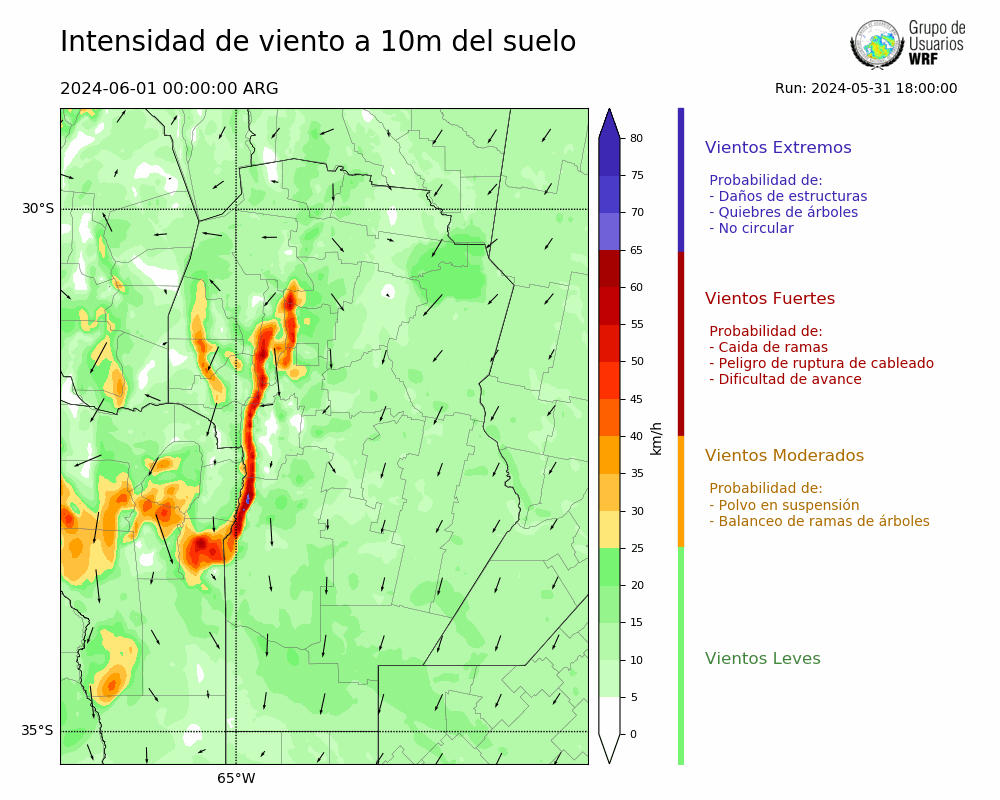 • Intensidad máxima: 14.06 km/h (01/06/2024 03hs.)