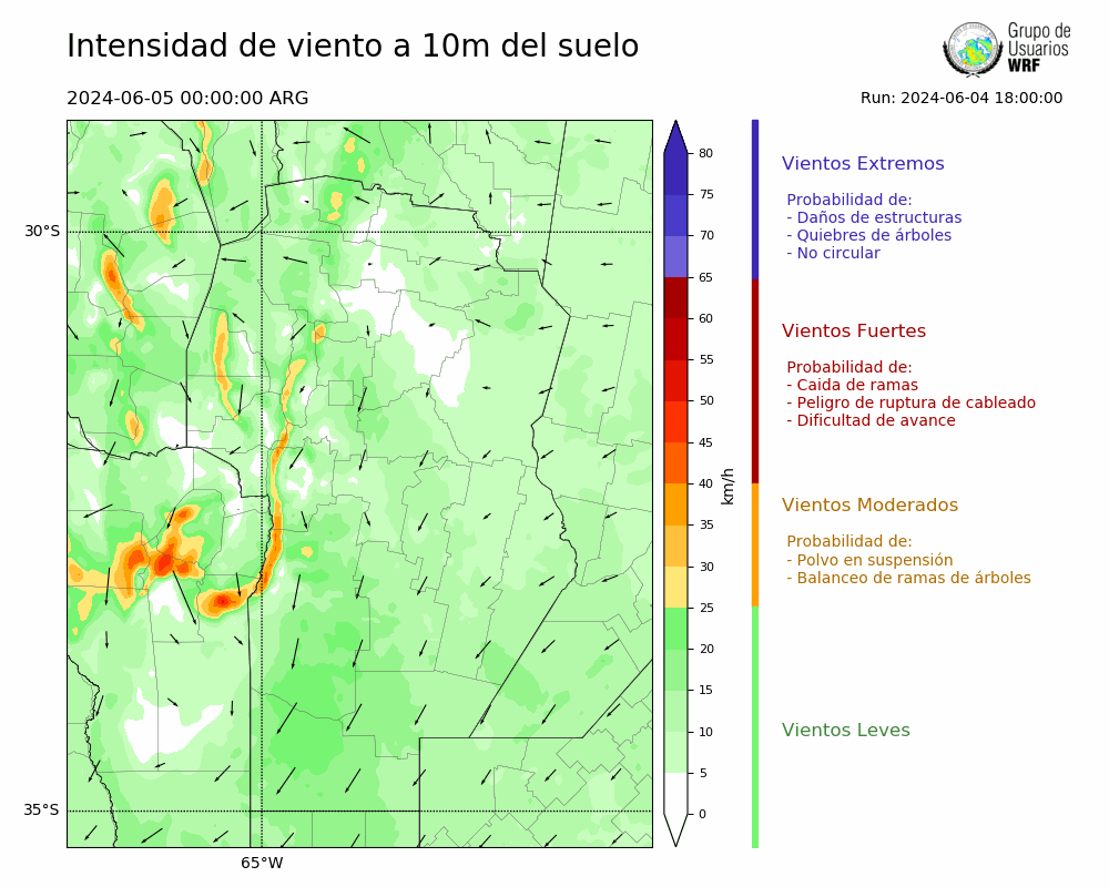 • Intensidad máxima: 17.00 km/h (05/06/2024 10hs.)