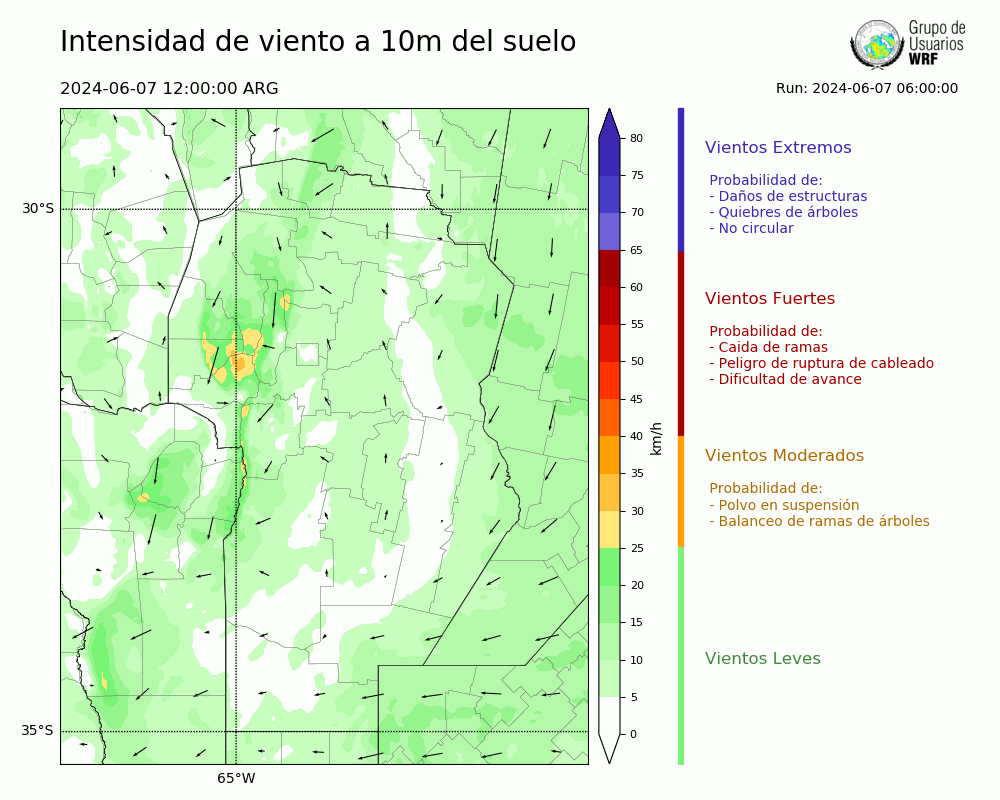 • Intensidad máxima: 12.62 km/h (07/06/2024 17hs.)
