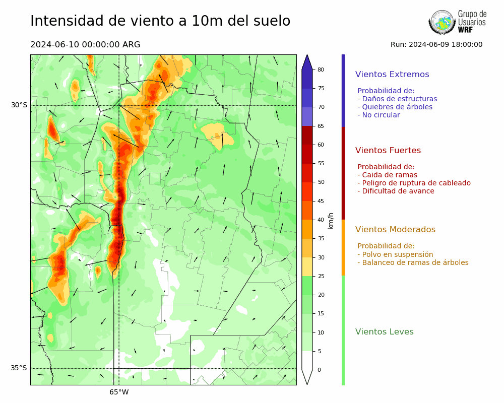 • Intensidad máxima: 8.01 km/h (12/06/2024 09hs.)