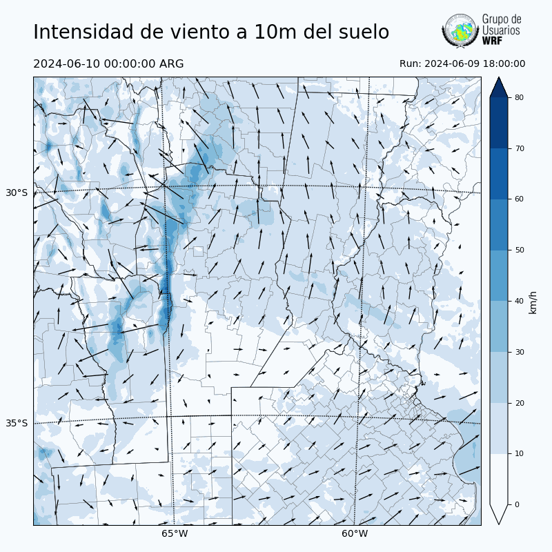 • Intensidad máxima: 15.42 km/h (10/06/2024 06hs.)