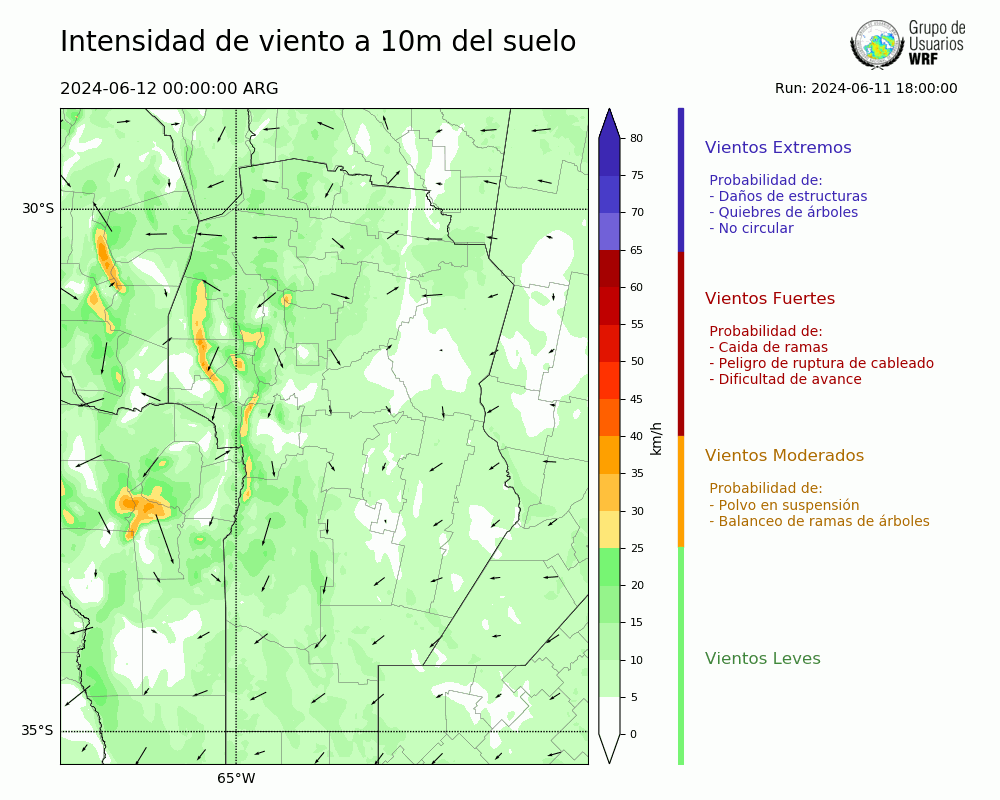 • Intensidad máxima: 12.35 km/h (12/06/2024 10hs.)