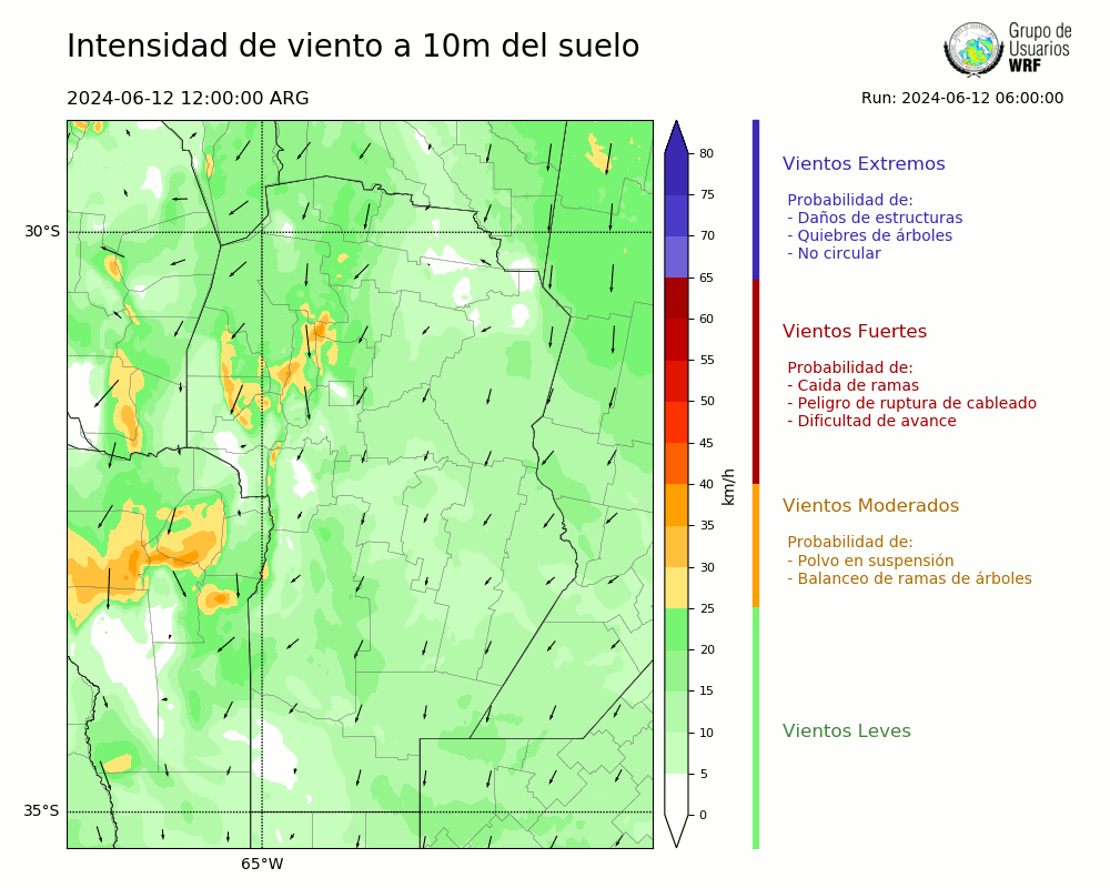 • Intensidad máxima: 20.99 km/h (12/06/2024 17hs.)