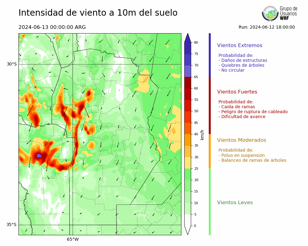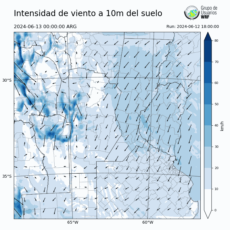 • Intensidad máxima: 34.38 km/h (13/06/2024 11hs.)