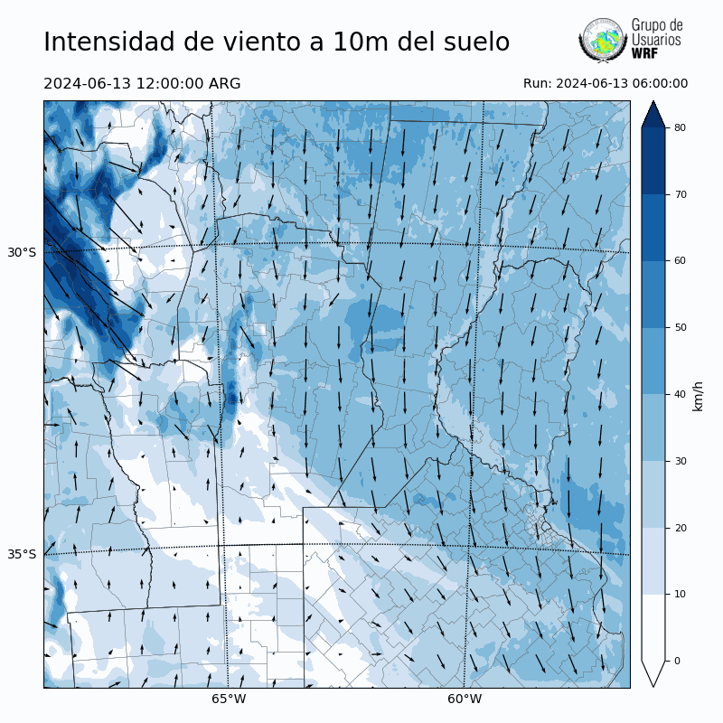 • Intensidad máxima: 14.45 km/h (14/06/2024 05hs.)
