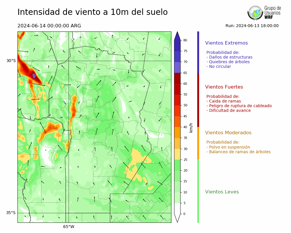 • Intensidad máxima: 12.95 km/h (14/06/2024 04hs.)