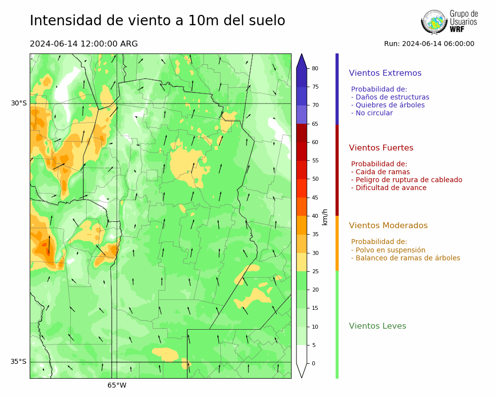 • Intensidad máxima: 32.20 km/h (14/06/2024 16hs.)