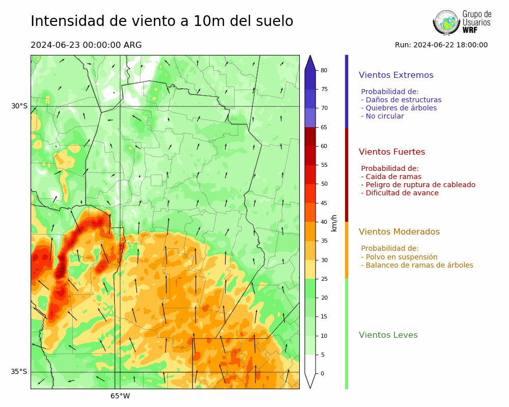 • Intensidad máxima: 30.53 km/h (23/06/2024 05hs.)