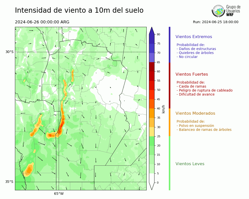 • Intensidad máxima: 10.11 km/h (26/06/2024 02hs.)