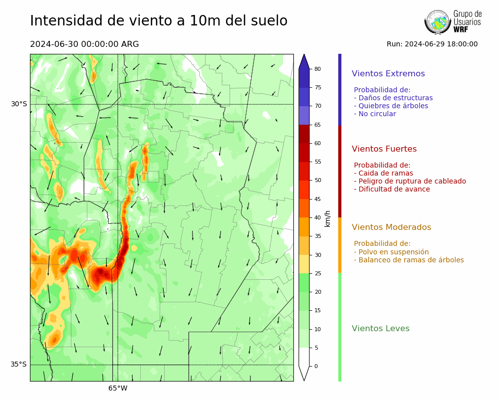 • Intensidad máxima: 11.91 km/h (30/06/2024 00hs.)