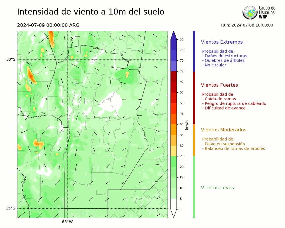 • Intensidad máxima: 14.03 km/h (09/07/2024 11hs.)