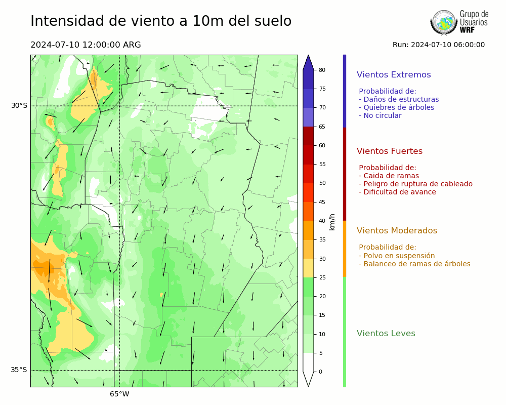 • Intensidad máxima: 12.58 km/h (12/07/2024 23hs.)