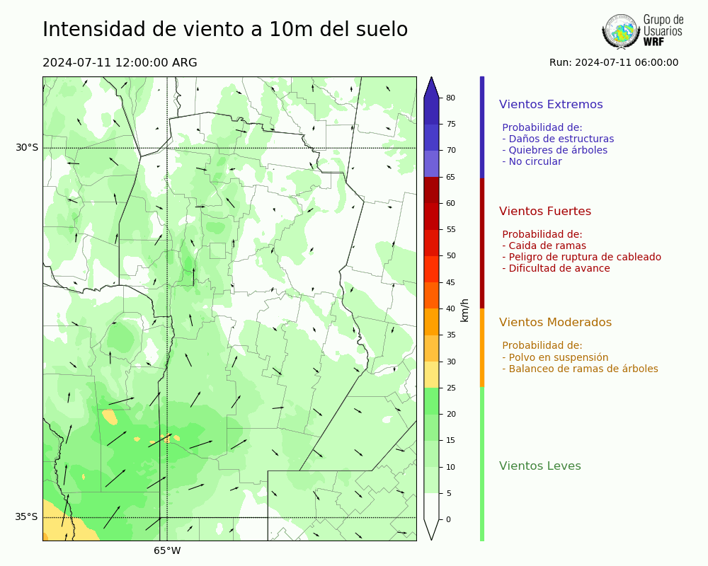 • Intensidad máxima: 7.53 km/h (11/07/2024 13hs.)