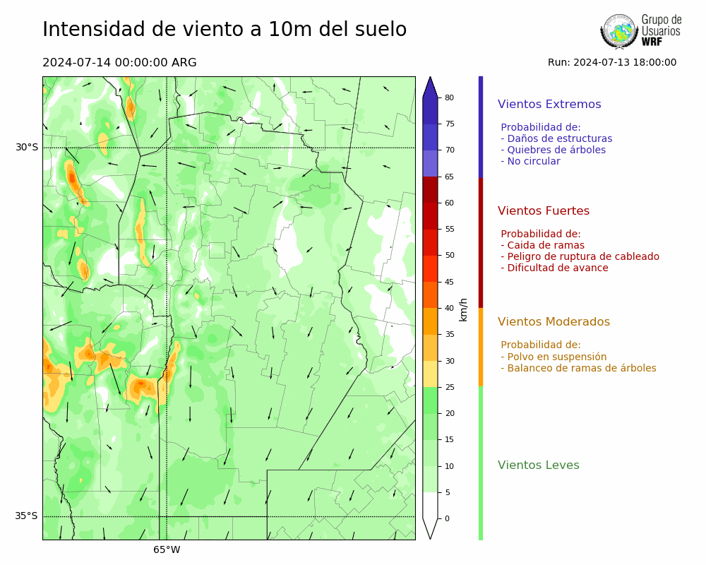 • Intensidad máxima: 11.97 km/h (14/07/2024 00hs.)