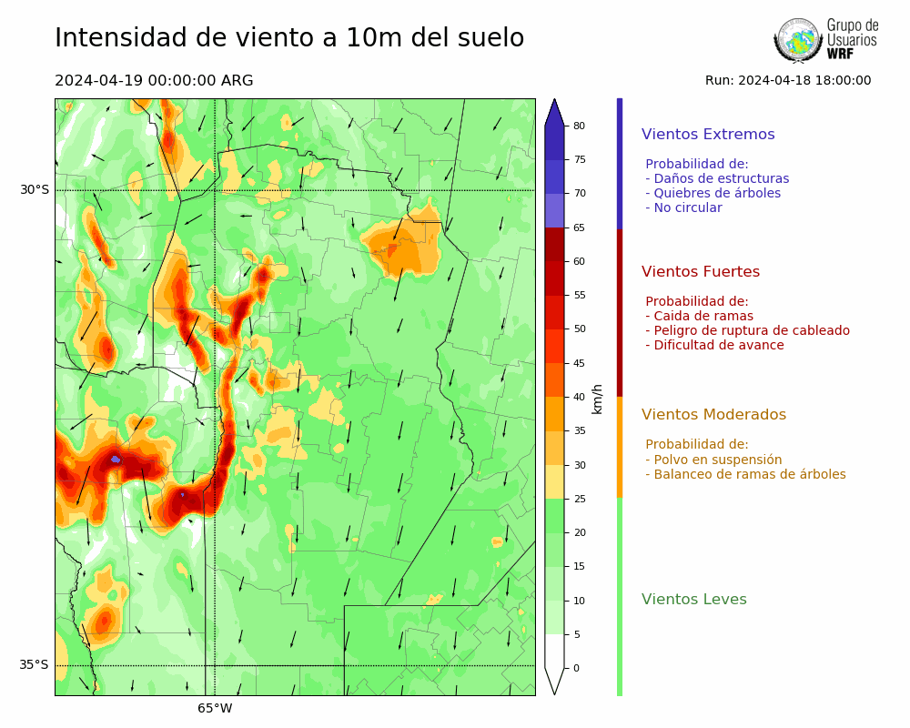 • Intensidad máxima: 18.34 km/h (19/04/2024 03hs.)