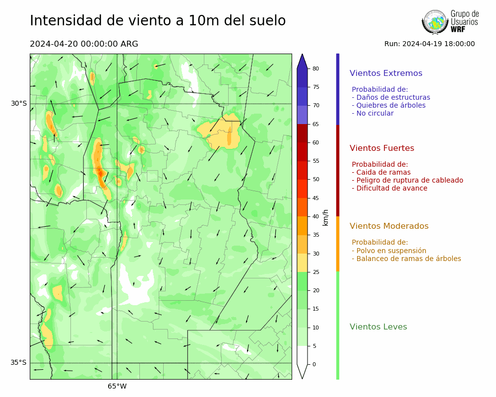 • Intensidad máxima: 15.90 km/h (20/04/2024 05hs.)
