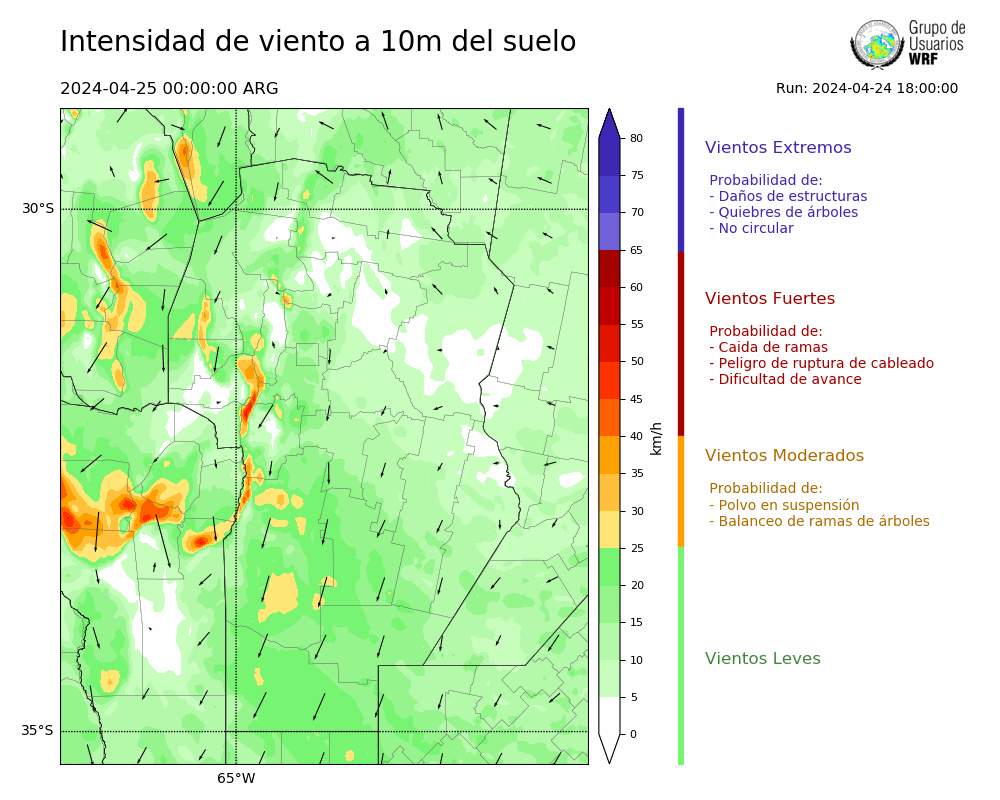 • Intensidad máxima: 13.78 km/h (25/04/2024 06hs.)