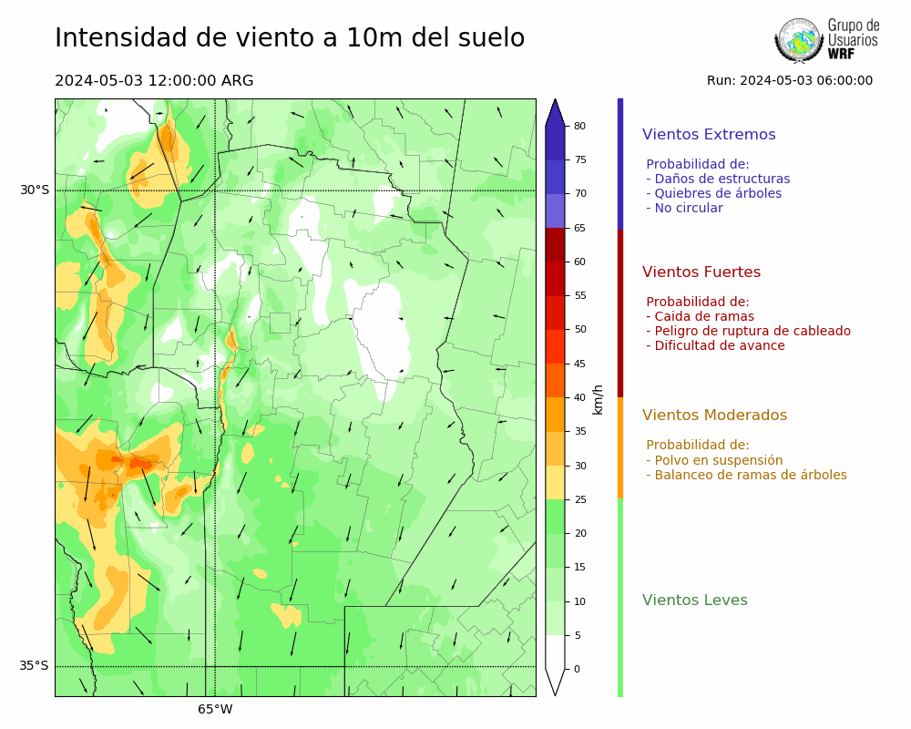 • Intensidad máxima: 9.86 km/h (04/05/2024 05hs.)
