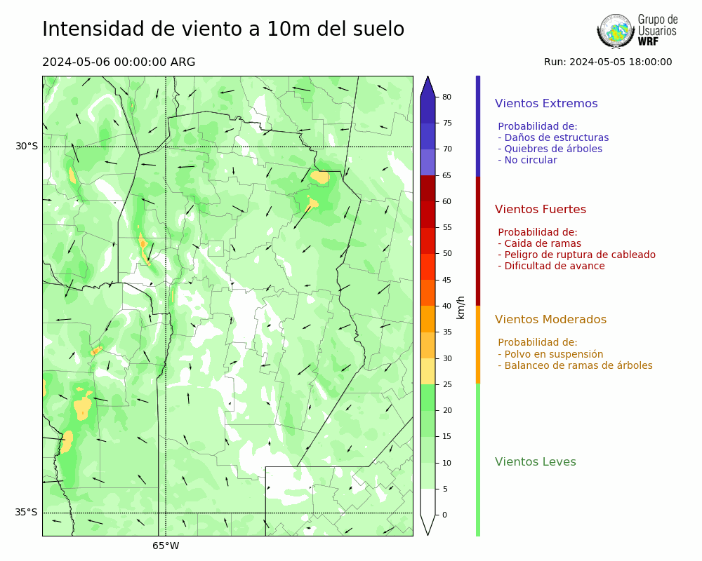 • Intensidad máxima: 7.65 km/h (07/05/2024 21hs.)