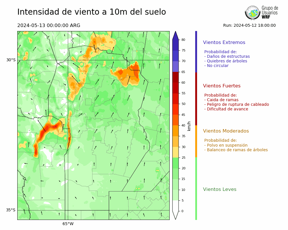 • Intensidad máxima: 13.38 km/h (13/05/2024 03hs.)