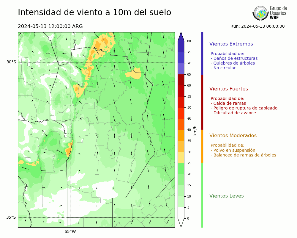• Intensidad máxima: 13.46 km/h (13/05/2024 17hs.)