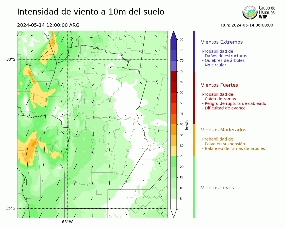 • Intensidad máxima: 11.71 km/h (14/05/2024 23hs.)