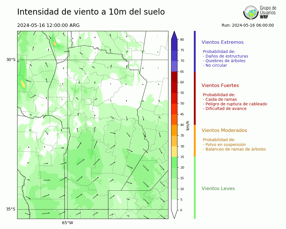 • Intensidad máxima: 12.04 km/h (17/05/2024 04hs.)