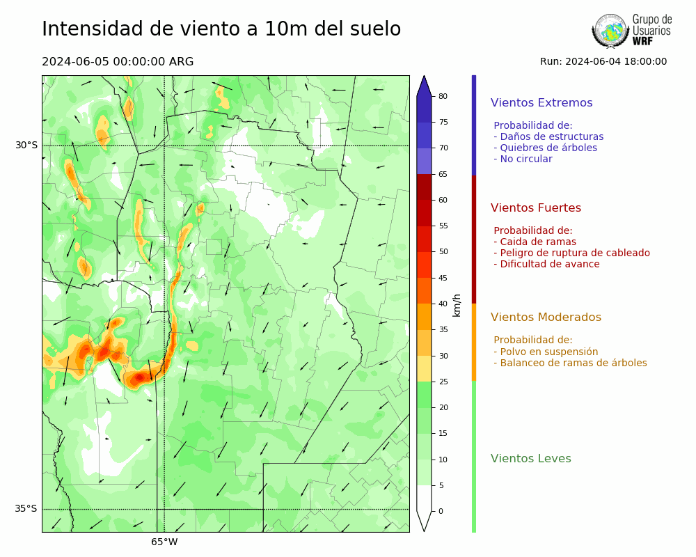 • Intensidad máxima: 7.47 km/h (05/06/2024 03hs.)
