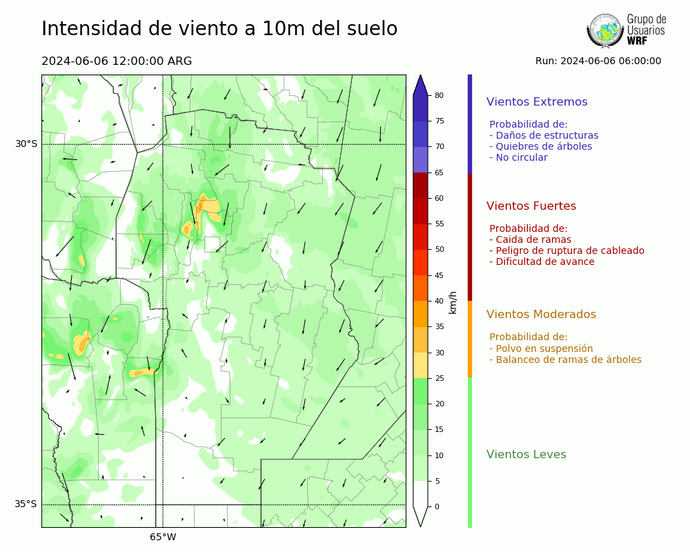 • Intensidad máxima: 10.88 km/h (06/06/2024 22hs.)