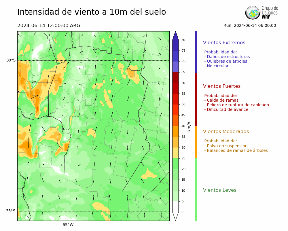 • Intensidad máxima: 31.65 km/h (14/06/2024 16hs.)
