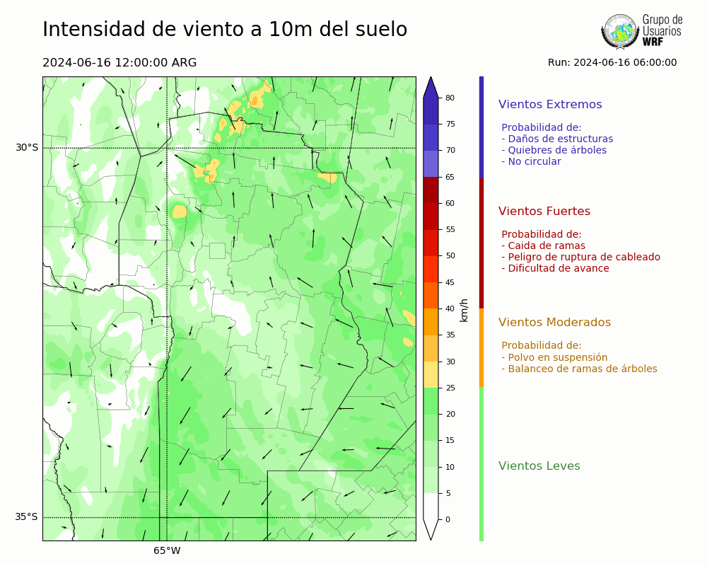 • Intensidad máxima: 12.52 km/h (17/06/2024 11hs.)