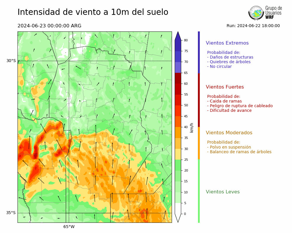 • Intensidad máxima: 45.23 km/h (23/06/2024 03hs.)