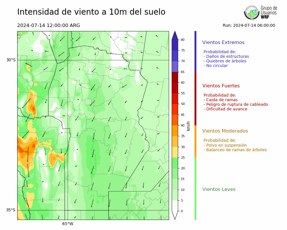 • Intensidad máxima: 16.55 km/h (14/07/2024 17hs.)
