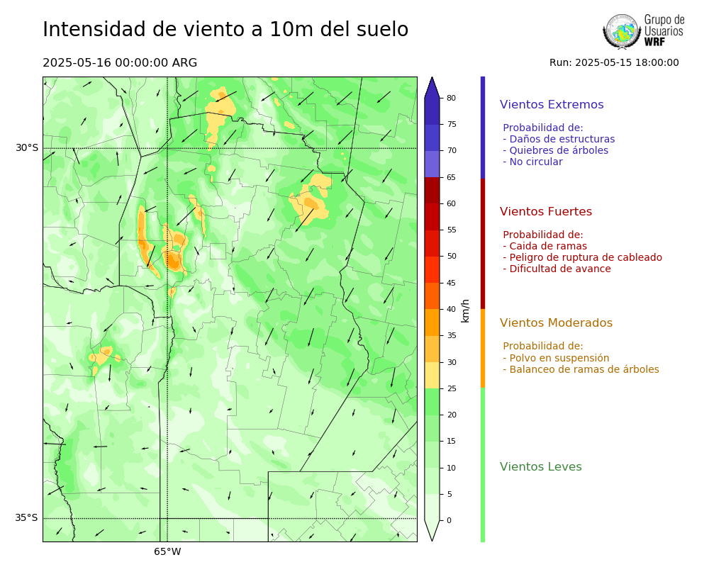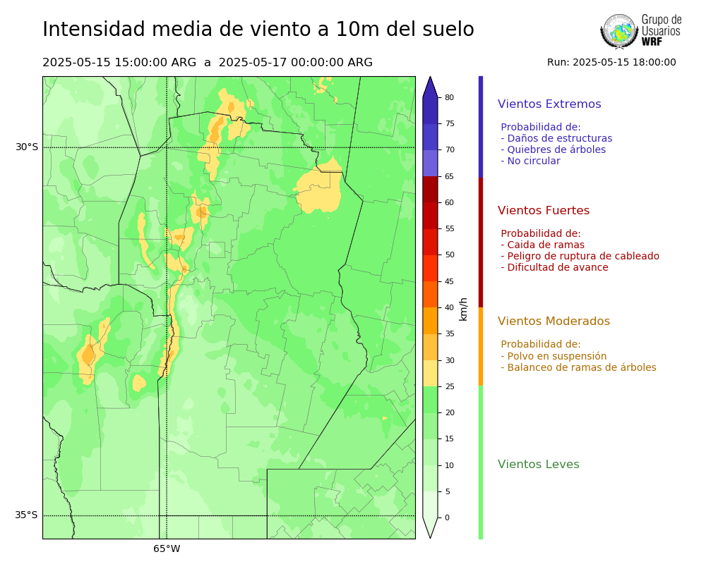 • Intensidad máxima: 35.25 km/h (17/05/2025 14hs.)
