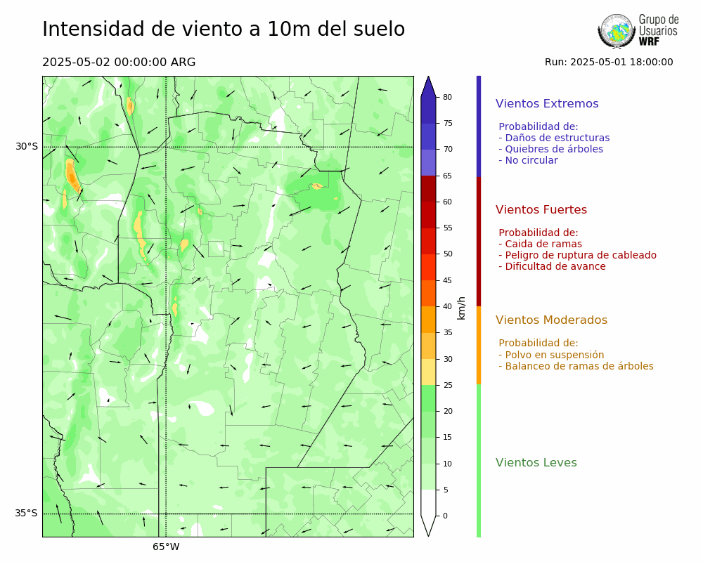 • Intensidad máxima: 6.73 km/h (03/05/2025 03hs.)