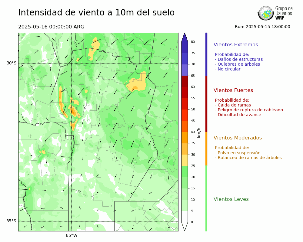 • Intensidad máxima: 20.57 km/h (16/05/2025 11hs.)