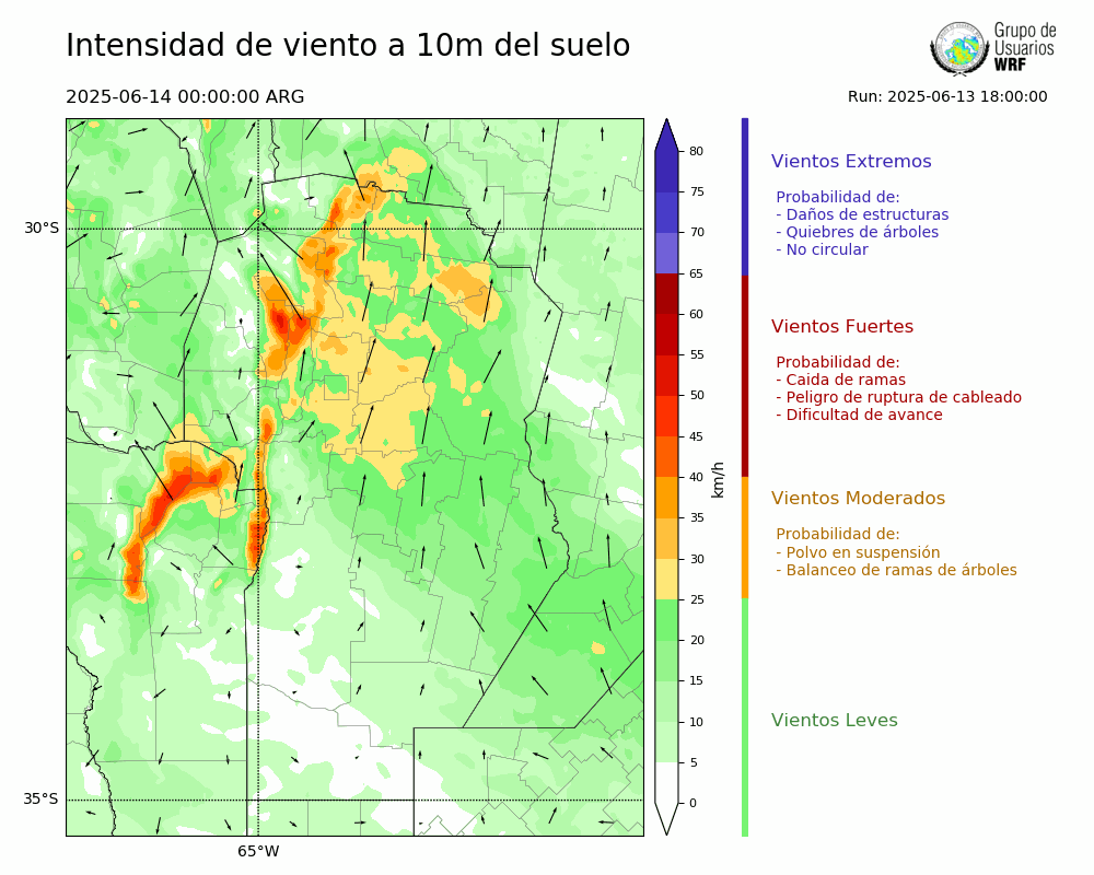 • Intensidad máxima: 22.22 km/h (14/06/2025 01hs.)