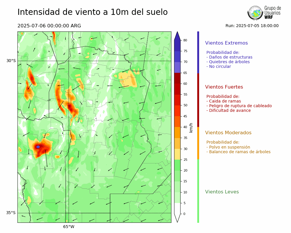• Intensidad máxima: 10.12 km/h (08/07/2025 03hs.)