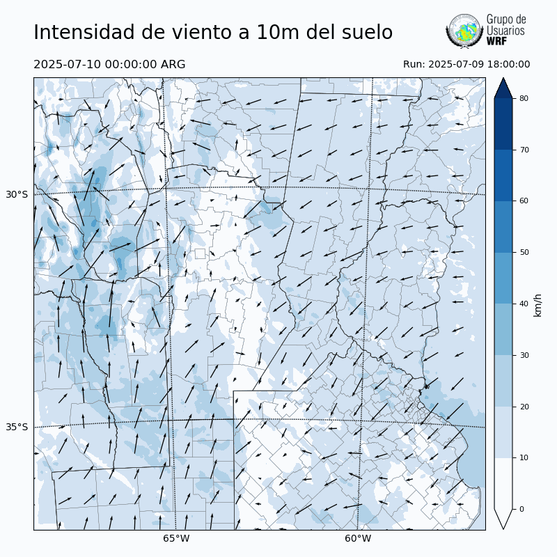• Intensidad máxima: 13.46 km/h (10/07/2025 03hs.)