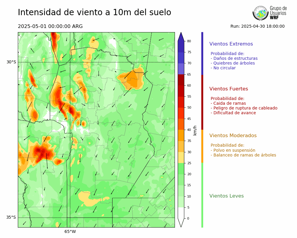 • Intensidad máxima: 18.52 km/h (01/05/2025 01hs.)