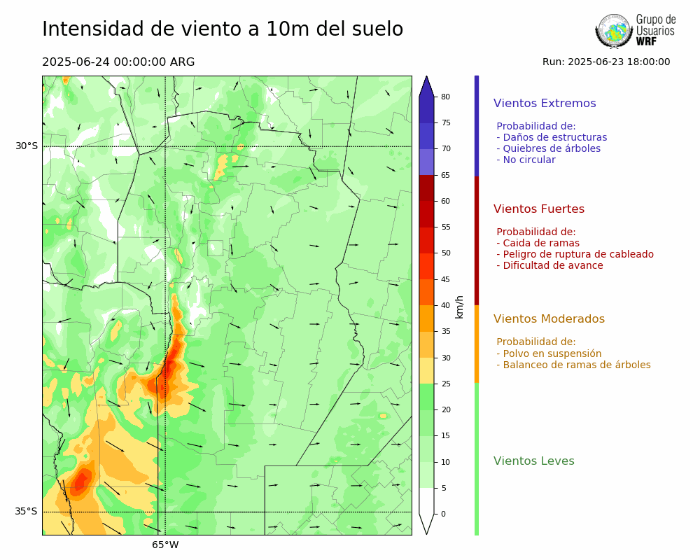 • Intensidad máxima: 14.19 km/h (24/06/2025 09hs.)