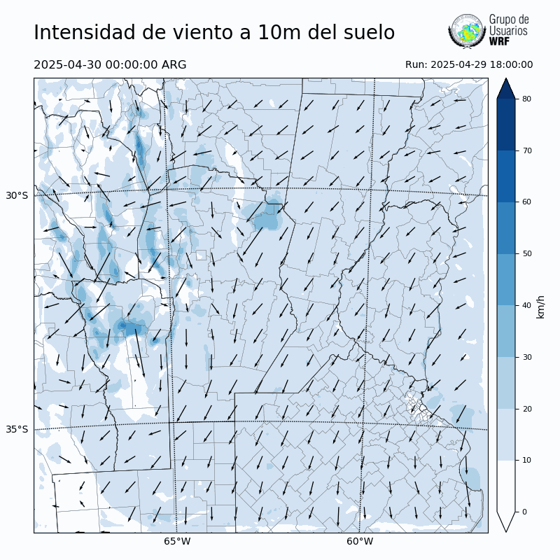 • Intensidad máxima: 18.00 km/h (30/04/2025 05hs.)