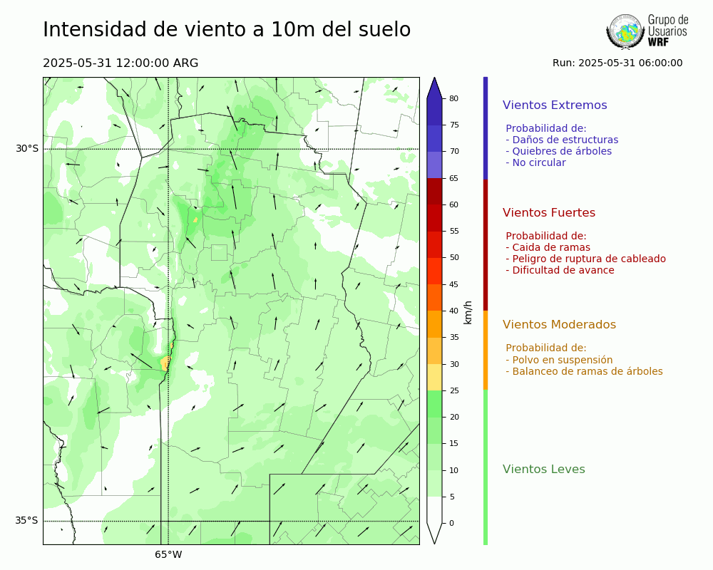 • Intensidad máxima: 11.82 km/h (31/05/2025 22hs.)