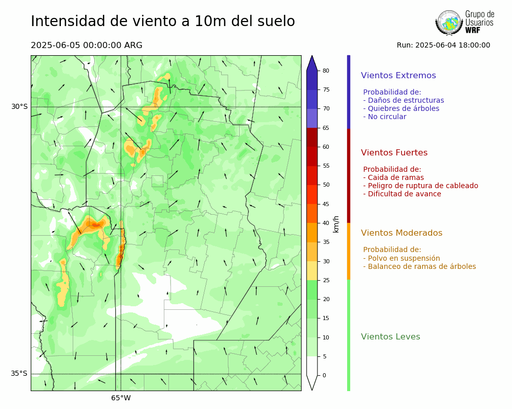 • Intensidad máxima: 13.13 km/h (06/06/2025 03hs.)