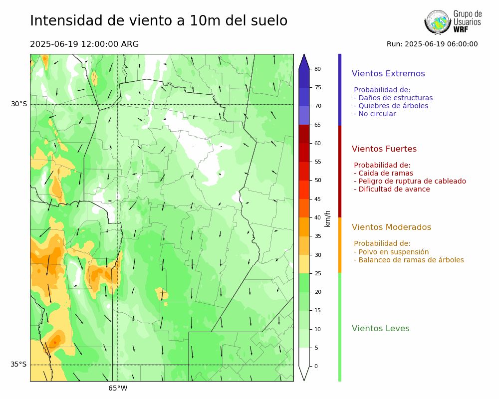• Intensidad máxima: 17.75 km/h (19/06/2025 14hs.)